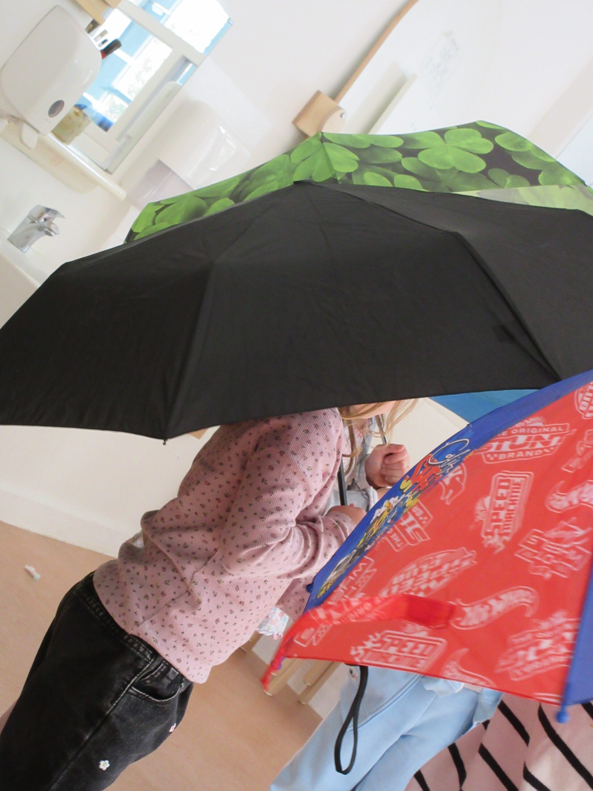 Nachdem die Kinder erzählt hatten, dass der Elefant im Bilderbuch verschiedene Tiere getroffen hat, erklärte Selina, dass nun der Schirmtanz erfolgen soll. Selina erklärte den Kindern die Regeln im Umgang mit den Schirmen, damit kein Kind verletzt wird. Nach intensivem Üben spielten die Kinder noch ein paar Runden Feuer-Wasser-Blitz. Nach dem Abschiedslied verabschiedeten wir Selina.