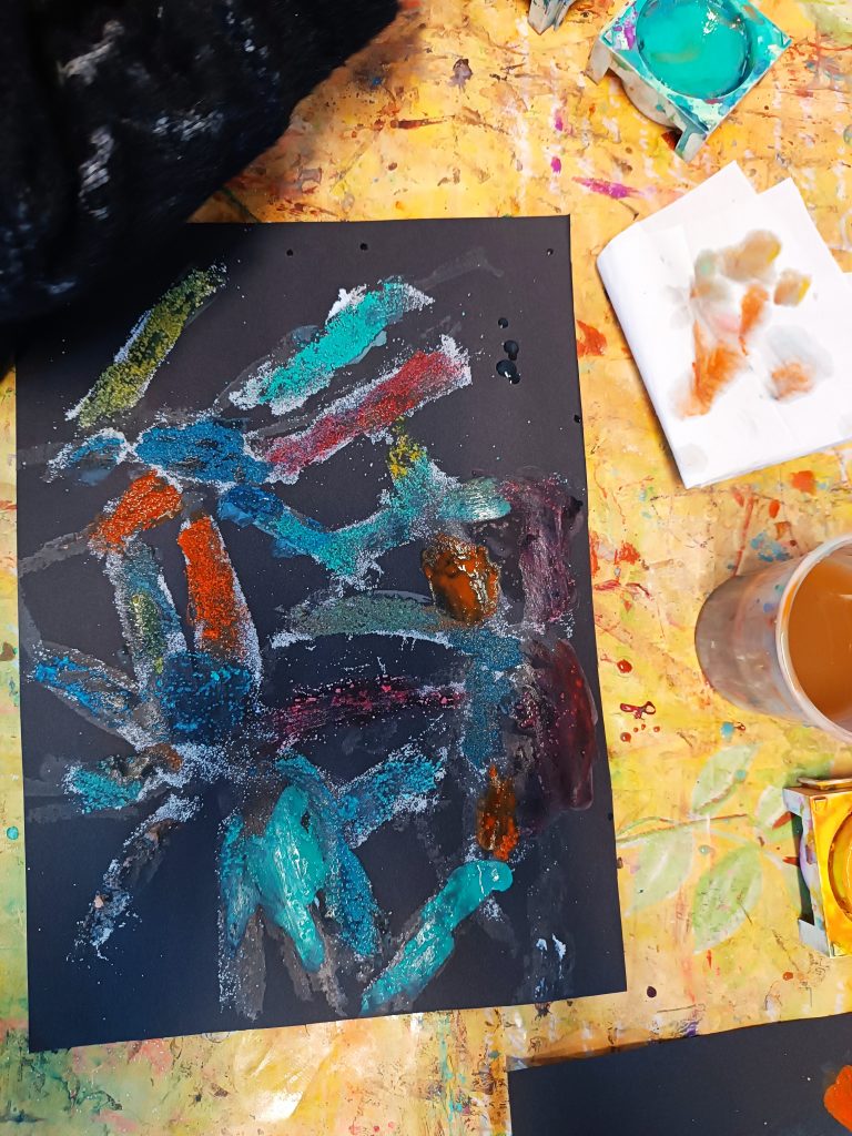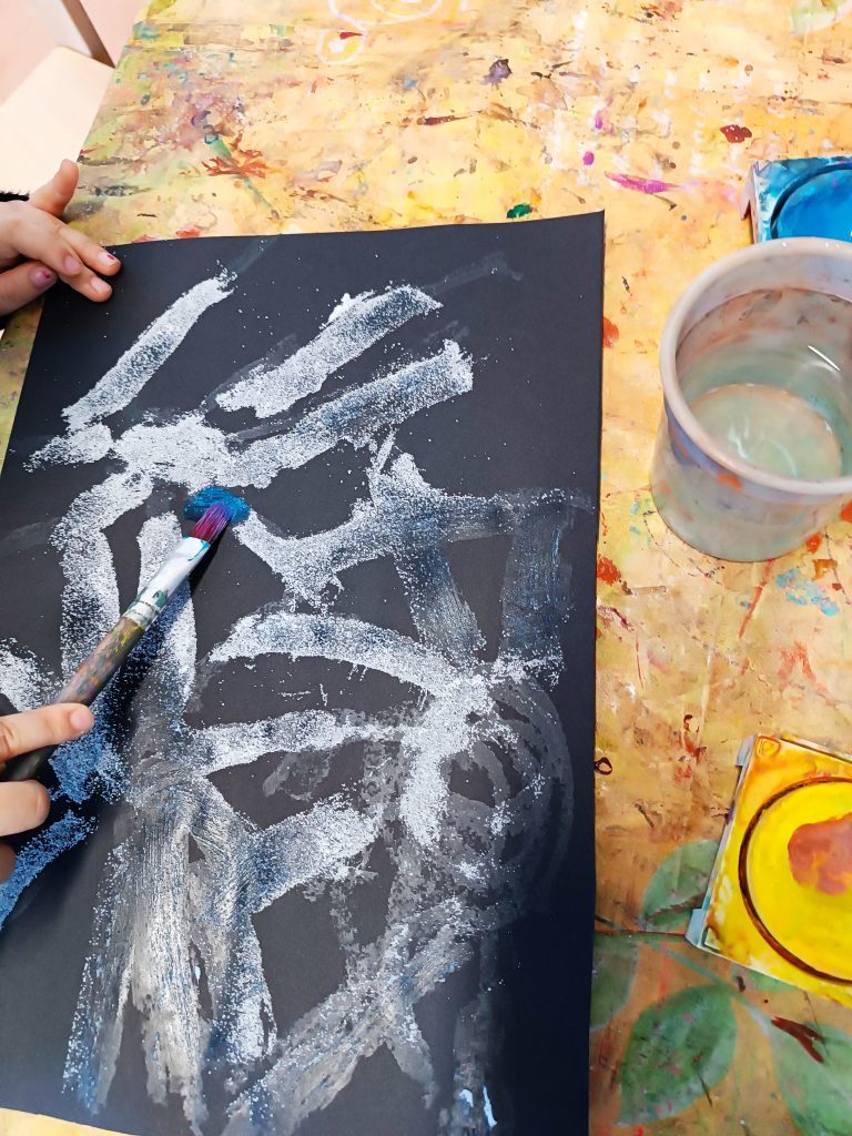 Heute Nachmittag konnten die Kinder mit Wasserfarben malen. Es wurde gekleckst und gespritzt und es entstanden zahlreiche Bilder